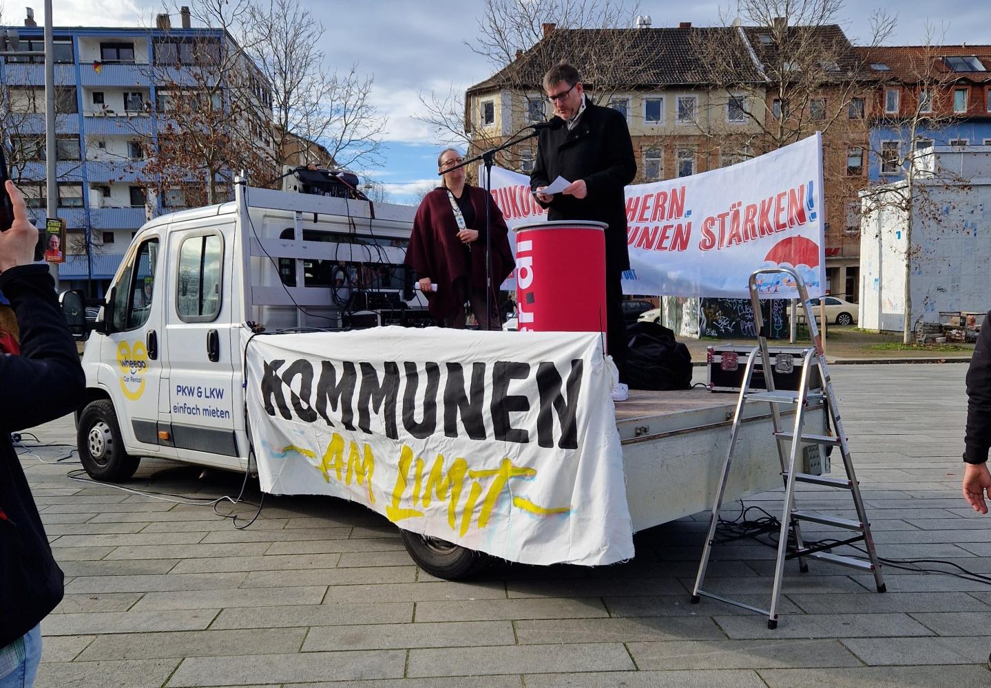 Mannheim, 28.02.2026: Gemeinsam mit anderen Einrichtungen, Organisationen und Mannheimer Bürger*innen nahm der Paritätische Kreisverband Mannheim an der Demonstration des Bündnisses "Kommunen am Limit" teil. Damit haben ca. 300 Teilnehmende ein Zeichen gegen die Unterfinanzierung unserer Stadt gesetzt, welche zu Kürzungen oder gar den Verlust sozialer Angebote und Dienstleistungen führt. Dem Paritätischen Kreisverband Mannheim war es dabei ein wichtiges Anliegen sich solidarisch mit den demokratischen Kräften im Gemeinderat zu zeigen und für eine bessere kommunale Finanzausstattung einzustehen.