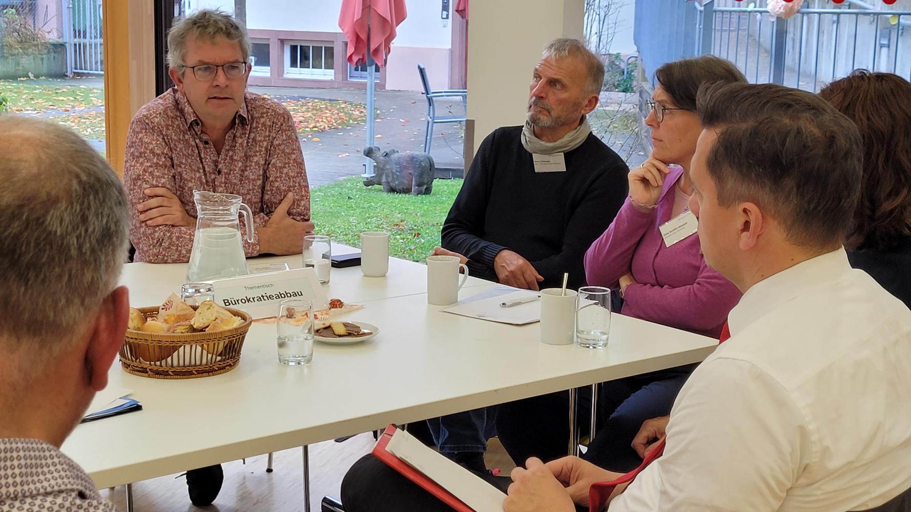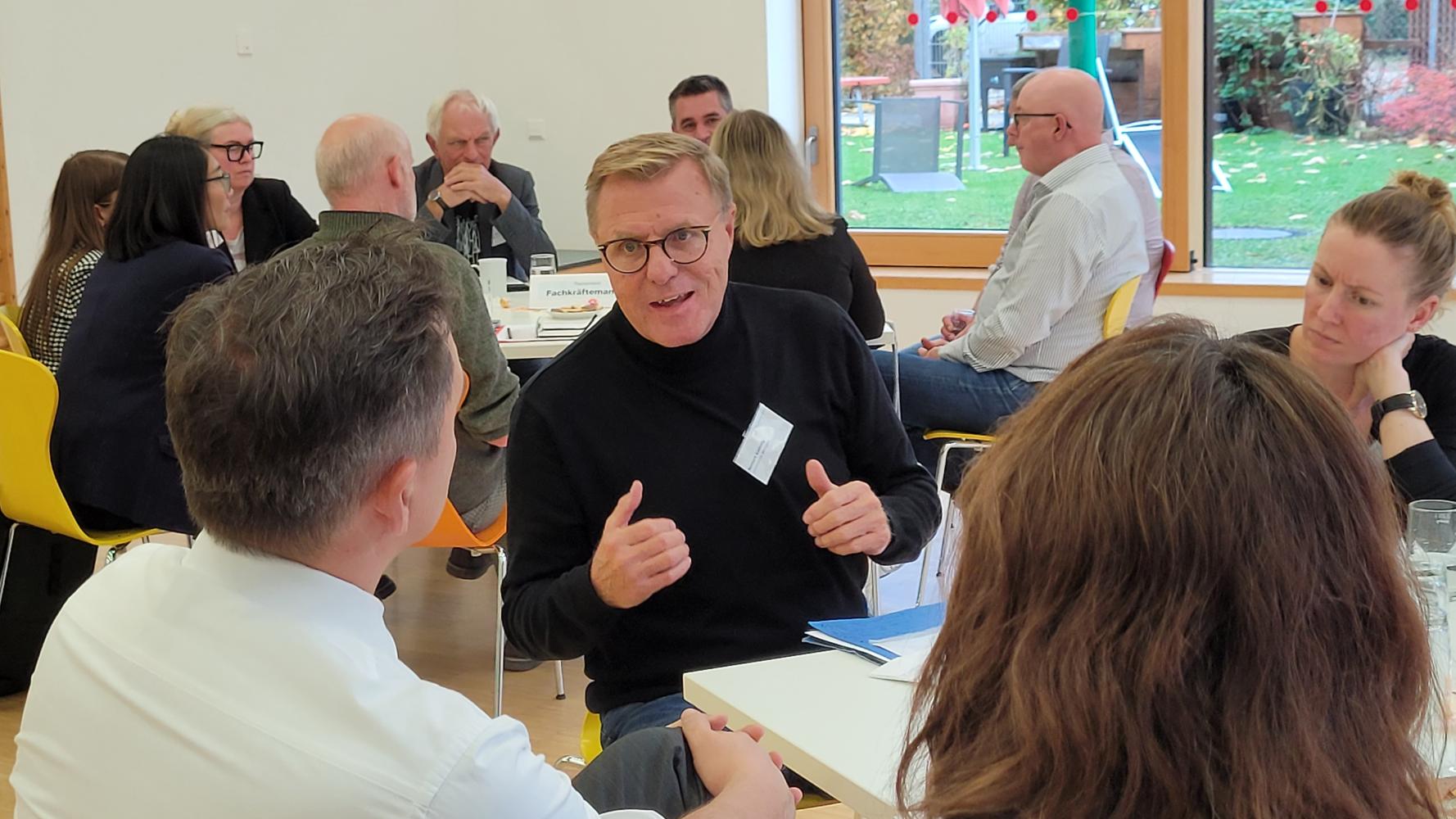 Konkret wurde an zwei Thementischen zu den Unterpunkten Fachkräftemangel und Bürokratisierung diskutiert. Die Themenpaten Alexander Oberschmid, Geschäftsführer CHRISTIANI e. V. und Vorstandsvorsitzender des Paritätischen Kreisverbands Waldshut-Tiengen, und Norbert Köthnig, Geschäftsführer der Lebenshilfe Breisgau gGmbH und Vorstandsvorsitzender des Paritätischen Kreisverbands Emmendingen, moderierten ihre Gruppen und gaben im Anschluss im Plenum weiter, was besprochen wurde.