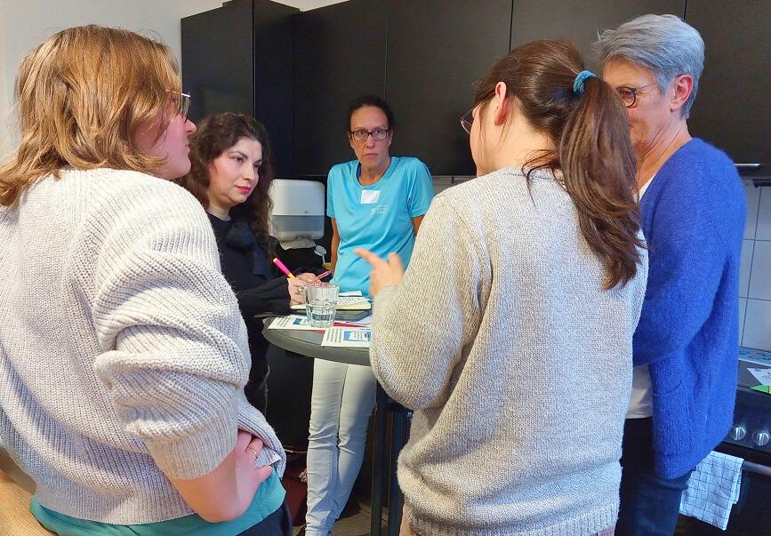 Diana Arnold (CDU), Dorothea Kliche-Behnke (SPD), Daniel Lede Abal (B90/ Die Grünen), Tom Besenfelder in Vertretung von Katharina Poppei (Die Linke) und Irene Schuster (FDP) sagten ihre Teilnahme sofort zu. Auch der Zulauf auf Seiten des Sozialwesens war groß: Über 30 Personen fanden sich bei der kit-Jugendhilfe ein, um ins Gespräch mit den Kandidierenden zu gehen. Da Interesse am fachlichen Austausch aus den unterschiedlichsten sozialen Sparten angemeldet worden war, kündigte Fabienne Christen, Regionalleitung Neckar-Alb des Paritätischen Wohlfahrtsverbands, ein Format in der Manier eines „politischen Speed-Datings“ an – viele Kontaktmöglichkeiten und eine Vielzahl an inhaltlichen Informationen und Fragen, mit der Möglichkeit, im Anschluss an die Veranstaltung vertieft in den Kontakt zu gehen. Nach einem kurzen Einstieg zur Bedeutung des Sozialwesens als Ganzes wurde an fünf Thementischen mit Vertreter*innen von jeweils zwei sozialen Einrichtungen 10 Minuten lang mit einem Kandidierenden diskutiert, informiert und nachgefragt. Anschließend wechselten die Kandidierenden an den nächsten Tisch, bis nach 60 Minuten alle fünf Gesprächsrunden absolviert waren. Dorothea Kliche-Behnke fasste entsprechend zusammen, dass sie soeben durch ein buntes Sammelsurium an sozialen Fachbereichen geeilt sei, das sie sich mühsam in 18 Jahren kommunal- und landespolitischer Tätigkeit erschlossen hatte. Gerade für die Neulinge unter den Kandidierenden war das Format demgemäß herausfordernd. Dennoch meisterten alle fünf Politiker*innen die Veranstaltung vorbildlich: Es wurde an den Tischen mit Interesse nachgehakt, politisch Stellung bezogen und manches in Kontrast zu den politischen Realitäten gesetzt, obwohl definitiv Verständnis für die sachliche Notwendigkeit von politischen Anpassungen vorhanden sei. Abschließend erhielten die Kandidierenden die Gelegenheit im Plenum ihr jeweiliges Fazit und den Bezug zum Wahlprogramm zu formulieren. Hier legte Diana Arnold (CDU) einen Schwerpunkt auf die kostenlose frühkindliche Bildung, Entbürokratisierung und Hilfe durch verbesserte Digitalisierung. Irene Schuster (FDP) erwähnte unter anderem, dass durch mehr Vertrauen mehr Handlungsspielräume für soziale Einrichtungen entstehen sollten und von sozialen Härten Betroffene möglichst viel Wahlfreiheit haben sollten. Dorothea Kliche-Behnke (SPD) betonte, dass die ungleichen Lebensverhältnisse gesellschaftlich schwierig seien; zudem brauche es mehr vom Land initiierte und kontrollierte Standards im Sozialwesen. Auch die Bedeutung von Prävention und einer bedarfsdeckenden Versorgung bei psychischen Krisen müsse politisch ernstgenommen werden. Daniel Lede Abal (B90/die Grünen) wiederum machte sich stark dafür, von der Projektfinanzierung hin zu einer verlässlichen und nachhaltigen finanziellen Ausstattung zu gelangen. Außerdem sprach er offen aus, dass mehr Geld, auch für die Kommunen, notwendig sei für ein funktionierendes Sozialwesen. Hier dockte auch Tom Besenfelder (die Linke) an, der die belasteten Kommunalfinanzen ebenfalls als drängende politische Aufgabe benannte. Zudem seien generell faire Löhne die beste Prävention von sozialen Härten. Parteiübergreifend wurde betont, dass es politische Lösungen für die oft prekären Wohnsituationen brauche. Und auch, dass von den sozialen Einrichtungen erbrachte sogenannte Freiwilligkeitsleistungen mitnichten nur freiwillige – und somit verzichtbare – Angebote sind, wurde wiederholt von den Politiker*innen benannt. Vielmehr sind diese Ausdruck des grundlegenden Rechts auf soziale Teilhabe der Menschen und müssen dementsprechend auch weiterhin gestützt werden.