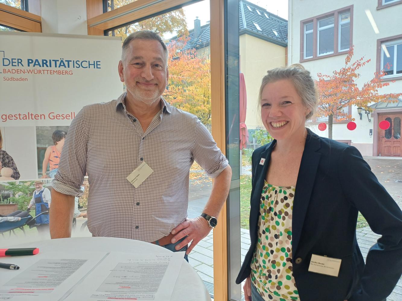 Nach fast 250 Tagen im Amt seit der Bundestagswahl im Frühjahr 2025 hat der Paritätische Regionalverbund Südbaden die Bundestagsabgeordneten der Region zum Sozialpolitischen Forum geladen. MdB Chantal Kopf (Bündnis 90/Die Grünen, Wahlkreis Freiburg) und MdB Johannes Fechner (SPD, Wahlkreis Emmendingen) stellten sich den Themen der Paritäter*innen. Dieses nicht öffentliche Treffen bot den Vertreter*innen südbadischer Mitgliedsorganisationen eine wertvolle Gelegenheit, gemeinsam mit Vertreter*innen anderer sozialer Organisationen und den MdB über aktuelle Themen und Herausforderungen in der Sozialwirtschaft zu diskutieren und gleichwohl den Politikern, sämtliche Fragen zu stellen, die im Beisein der Presse möglicherweise nicht gestellt worden wären. Es wurden direkte Anliegen formuliert, Lösungsvorschläge eingebracht sowie gemeinsam entwickelt. Dabei stand der Wert der Sozialen Arbeit im Vordergrund.